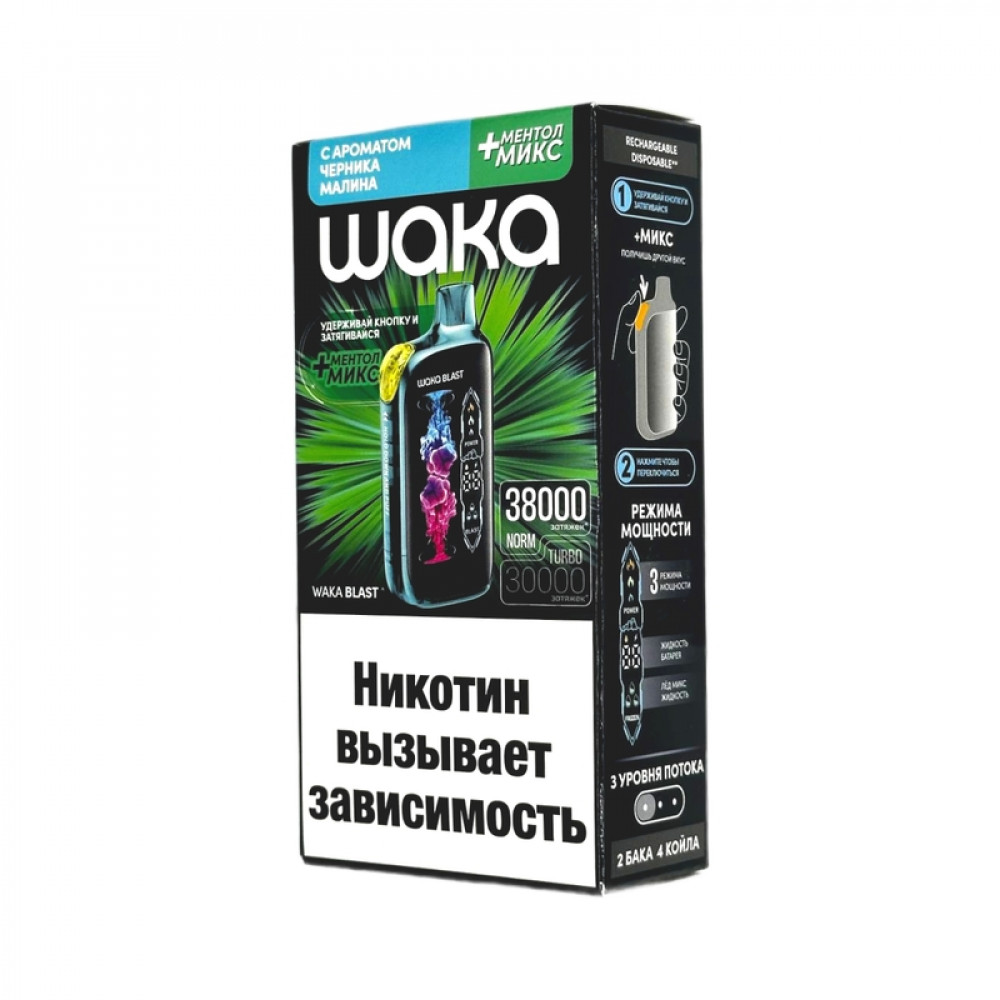 WAKA BLAST 38000 Hard - Черника малина + ментол микс - купить в Боготоле